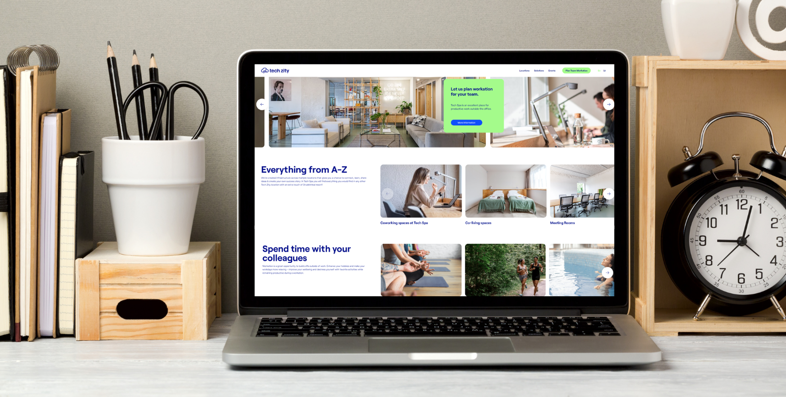 Tech Zity approached FrontIT with a clear vision for the new location - to replace an outdated and hard-to-maintain existing site. In addition to a new, elegant design, the new site had to be as adaptable as possible.